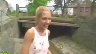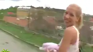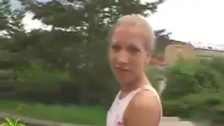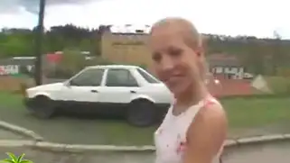 Смазливая блондинка за деньги лакомится спермой пикапера