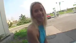 Молодую блондинку завели в толчок и вылили сперму на язычок