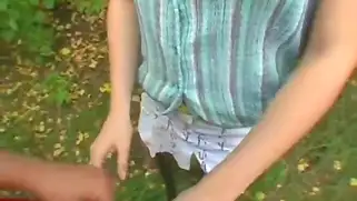 Жадная до денег шлюшка сосет хуй пикапера в полисаднике возле дома