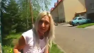 - Посадил блондинку между помойными баками и накончал в рот телке