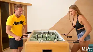 Порно видео HD, Страстный секс - Симпатичная баба с классной жопой и киской бритой сначала играет с мужиком в настольный футбол, а потом сосет хуй, потому что сильно возбудилась от всего. Он достал большой пенис и наяривает влажную дырочку, которая потом пускает струю жидкости, потому что кончает и это уже не просто ебля, а сквирт видео.