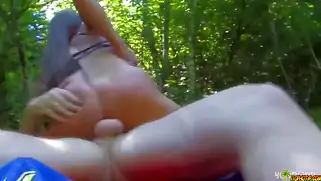 На природе среди березок грудастую блядь поимели в густой траве