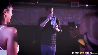 Пьяные нимфоманки в баре трахаются с мужиком и кончают