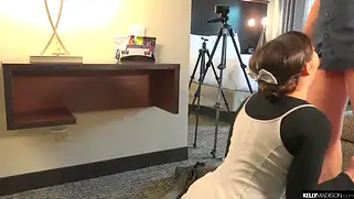 Ryan Madison - Брюнетка не снимает кроссовки, когда трахается с парнем в киску большим членом. Мужик опытный и засовывает хуй глубоко не только в киску, но и в ротик бабе, от чего она чуть не подавилась, потому что размер пениса у мужика довольно длинный. После секса он кончил в киску шлюшке и телка ссыт, показывая это крупным планом.