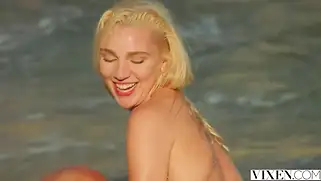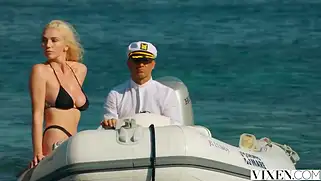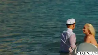 Капитан купается в море с красавицей и трахает блондинку на пляже