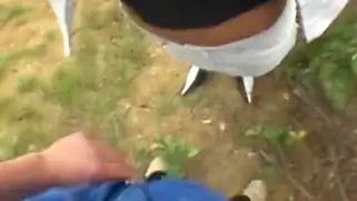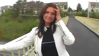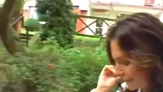 - Брюнетка с волосатой пиздой опирается на столб во время ебли