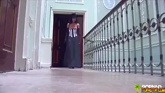 Мужик в шляпе опробует обе дырочки сучки в сексапильных чулках