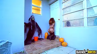 Порно видео В Сперме, Большой мужик трахает - Худая красотка с кудряшками будет стонать от глубокого проникновения в пизду и ловить оргазм от секса. Шлюшка будет стонать громко, когда начинается порно хеллоуин, а большой член проникает ей в тугую киску между ног. Мужик трахается страстно с ней, от чего телка ловит кайф и будет извиваться милашка.