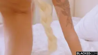 Тощая блондинка с татушками трахается с накачанным негром