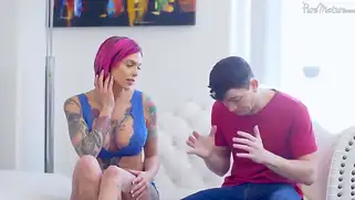 Порно видео HD, Курьер - Молодой курьер из службы доставки оказался в гостях у зрелой татуированной красотки с неземным цветом волос. Телочка устала дрочить киску в одиночестве, поэтому зазвала мужика себя трахнуть и поебалась