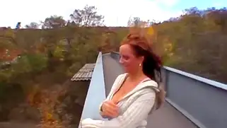 Во время прогулки на мосту шатенка решила сосать и ебаться