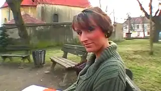 - Сисястая шатенка в уютной кофте обожает еблю в подворотне
