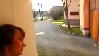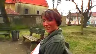 Сисястая шатенка в уютной кофте обожает еблю в подворотне