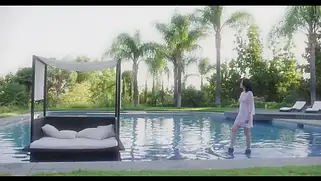 Жопастая наездница скачет резво на члене здоровом в секси бикини у бассейна