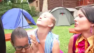 Женский порно оркестр получает золотой дождь и трахается на лужайке