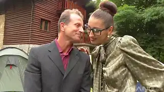 Худенькой Ольге попку спермой заливает после траха на природе у машины