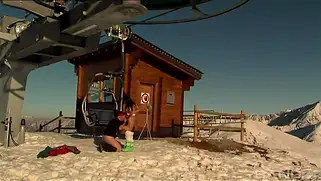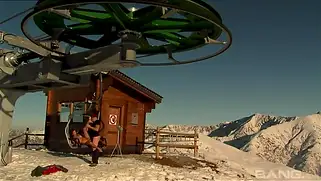 Порно видео HD, В горах - Итальянский горный лыжник на подъемнике возле вершины встретил смуглую азиатку и составил девушке компанию. Сучка разделась на снегу и трахалась в пути, сначала сосала хуй, а потом подставила пизду с очком