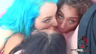 Порно видео HD, Минет - Самец по очереди выбирал проституток и ему приглянулась та, что с голубыми волосами. Естественно она будет сосать хуй мужику и вертеть попкой перед ним, но после пары минут секса ему показалось, что этого мало и тогда пригласили остальных. Вот теперь можно разгуляться и устроить например групповой минет с ними.