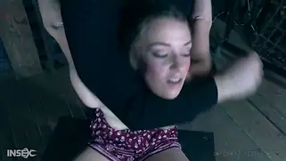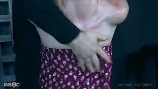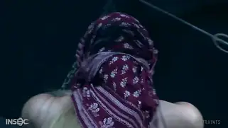 Порно видео HD, Между ног - Белой светловолосой рабыне накинули платье на голову и зафиксировали руки на растяжках за спиной. Сучка сидела по турецки, а между ног блондинки появился вибратор, который помог кончить связанной девушке