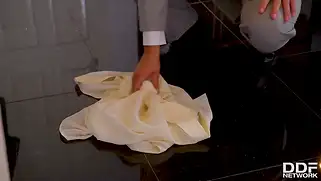 - У бабы мужик фетишист по всем фронтам. Он любит нюхать её трусики, её туфли и кайфует, когда ему дрочат ногами хуй. Она пошла мастурбировать в баньку после работы и когда муж приходит, он слышит стоны шлюшки там. Естественно шлюшка ловит кайф от глубокого проникновения пальчиками в пизду и присоединяется, чтобы начать порно в бане.