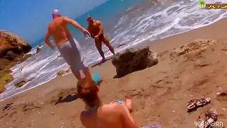 Качки ебут на пляже телочку. которая пришла позагорать там