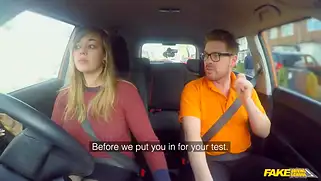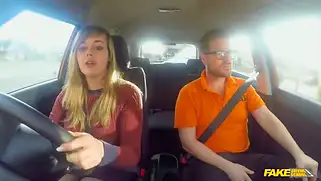 Большие сиськи жопастой блонды прыгают на уроке вождения