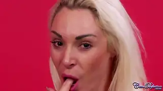 - Дама в черных чулках раздвигает ножки и можно заметить, что девушка без трусов сидит на диване. Она будет брать в ротик член мужика, который и пригласил её на порно пробы. Заниматься сексом не придется, только оральным и нужно будет довести до оргазма мужика. Он кончает на рожу много густой спермы телочке на лицо.