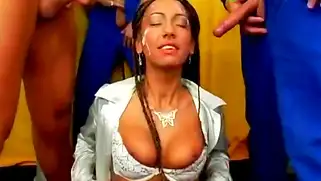 Бригада ремонтников окружила смуглую бабу и накончала на голову