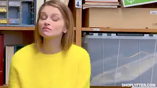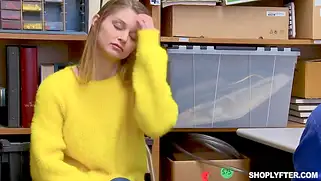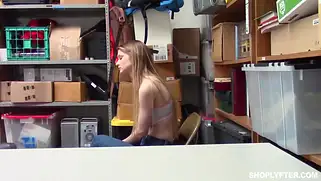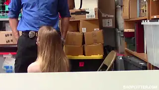 Русская девушка с большими дойками трахается в магазине с охранником
