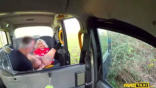 Праздничный трах в такси с грудастой блондинкой с наколками