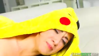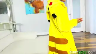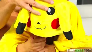 Порно видео HD, Сучка на члене - Молодая цыпа в прикольной желтой накидке с капюшоном подставила под член небритую пизду. Сучка сосала болт любовника и прыгала мокрой вагиной на члене, чувак кончил на задорное лицо бляди после перепиха
