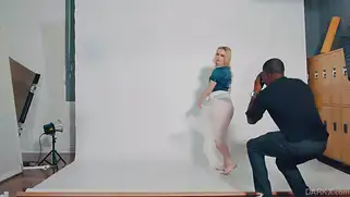 Черный фотограф снял трусы с белой модели и стал трахать блондинку