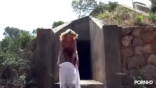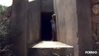 Нежная дрочка пизды голой блондиночки в заброшенном здании