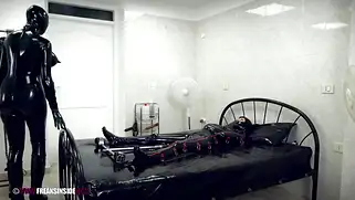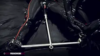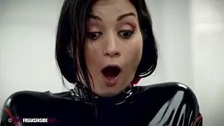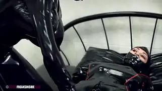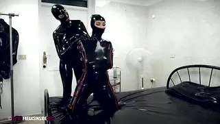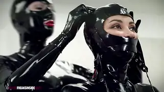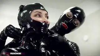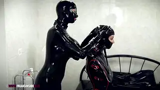- Грудастая баба в БДСМ костюме, а её подружка еще нет. Это нужно исправить, что и делает девушка в черном латексе. Она напялила на приятельницу новый костюмчик, а торчать остались только глаза и носик. В пизду же её засовывают самотык и таким образом мастурбирует вагину шалунья. Стонать неудобно, но подопытная издает звуки.