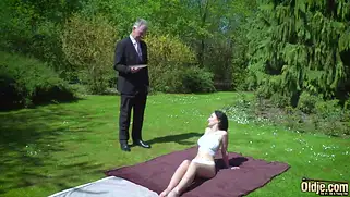 Порно видео HD, Соблазнила - Молодая изящная красавица с темными волосами сидела на травке в полуголом виде и пила безалкогольный коктейль через трубочку. Девушка легко соблазнила зрелого мужика и как следует трахнулась с пожилым парнем