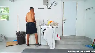 Молодую красавицу трахнули на стиральной машинке и кончили на лицо