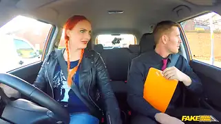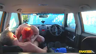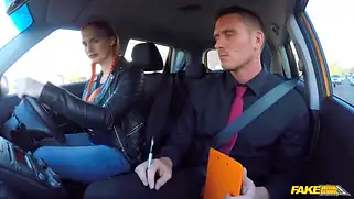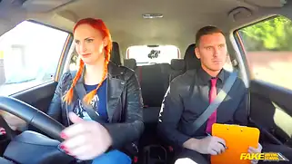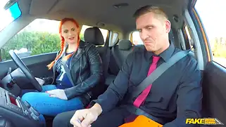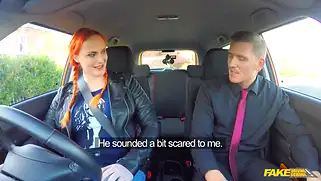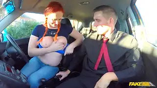 Порно видео HD, Волосатая киска - Рыжая девушка с большими сиськами и тонкими косичками уселась в машину с инструктором и несмело поехала вперед. Мужик дернул ручной тормоз и стал ебать грудастую бабу после минета, кончил на волосатую пизду