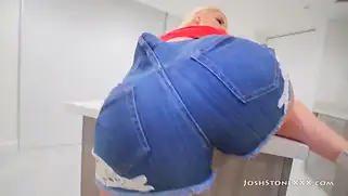 Упоротый лысый нигер пиздато трахает белокурую толстушку