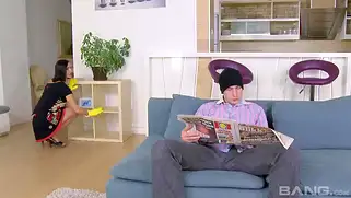Во время уборки русскую студентку с роскошной попкой смачно трахнули здоровым хуем