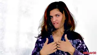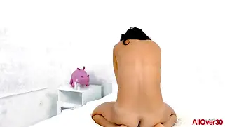 Milfs - Загорелая русская баба раздевается перед камерой и испытывает сексуальное возбуждение, судя по тому, как у нее встали соски. Красотка дрочит мохнатку ловкими пальцами и получает бурный оргазм после дрочки