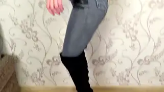 Русская чирлидерша в джинсах и сапогах любит бдсм трамплинг