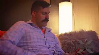 Русская красавица с шикарными дойками трахается с усатым мужиком