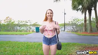 Пикапер снял рыжую бабу на улице и трахнул за деньги в бусе