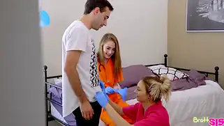 Красивая молодая санитарка не снимает перчатки когда трахается