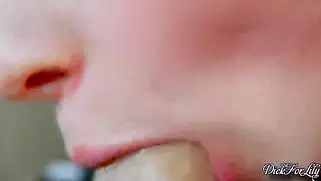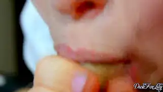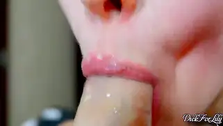 Порно видео HD, Минет крупным планом - Нежный минет крупным планом для любимого мужа делает жена. Красотка придерживает член руками и высовывает влажный язык, вылизывает головку члена, захватывает кончик ласковыми губами и и ждет выплеска спермы