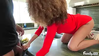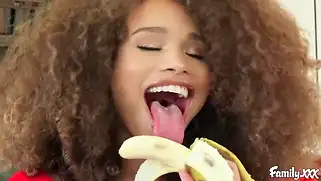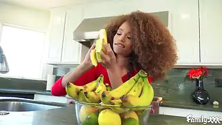 - Сексуальная красотка увидела на кухне бананы и подумала о сексе. Рядом стоял мужик с большим членом между ног и она мигом его возбудила. Естественно, они трахаются после ласк и орального секса, а его длинный пенис проникает во влажную и узкую пизду для такого полового органа. Шлюшка терпит и продолжает страстное порево с огромным самцом.