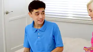 Дружеский секс как способ помочь приятелю в глубоком минете с камшотом в ротик