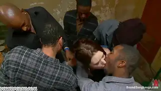 Смачный гангбанг трах пошленькой брюнетки с элементами бдсм