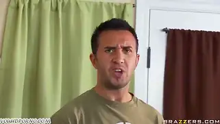 Блондинку с огромными сиськами душевно трахают двое парней