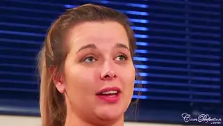 - Мужик смотрит на то, как телка в офисе у него раздевается и сам тоже скидывает с себя одежду и перед ней встает, чтобы она сосала пенис возбужденный. Телочка довольная отсасывает хуй и получает много спермы на лицо после этого. Естественно, она довольная будет показывать лицо в сперме после орального секса.